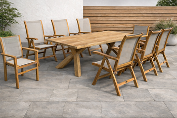 je vyroben z odolného recyklovaného teakového dřeva pocházejícího z Indonésie. Vyniká vysokou tvrdostí, dlouhou životností a přirozenou odolností vůči vlhkosti a škůdcům.