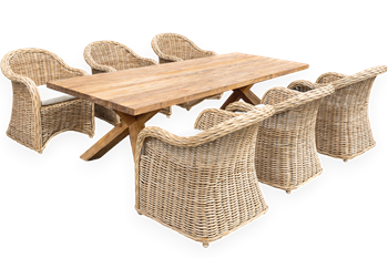 1× masivní teakový stůl 250 × 110 cm (deska z prken)