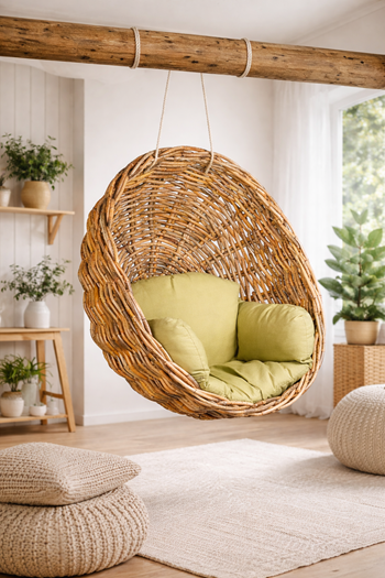 Závěsné křeslo GILI 120x90x75 cm s výpletem z přírodního silného ratanu mandola.