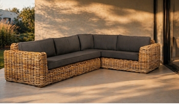 Luxusní ratanová sedací souprava NURU v provedení lévý roh zaujme elegantním designem a poctivým zpracováním z přírodního ratanu Mandola. Výplet je vyroben z přírodního ratanu o síle 15 mm, konstrukce pak z pevnostního ratanu o průměru 30 mm, což zajišťuje vysokou stabilitu a dlouhou životnost.