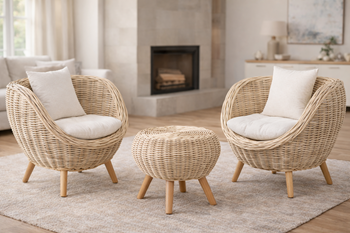 Set se skládá ze dvou křesel o rozměrech 80 × 72 × 75 cm a ratanového stolku o rozměrech 55 × 52 cm, které společně tvoří kompaktní a praktické posezení. Kostra křesel je vyrobena ze silného ratanu, díky čemuž sestava snese i vyšší zatížení a nabízí stabilní a bezpečné sezení. Součástí je kvalitní pohodlné polstrování, které zvyšuje komfort při každodenním používání.