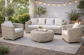 Zahradní ratanová sestava CORDOBA je vyrobena z přírodního broušeného ratanu cubu, který se vyznačuje vysokou pevností, pružností a dlouhou životností. Tento typ ratanu patří mezi nejodolnější přírodní materiály používané pro výrobu venkovního nábytku. Díky broušenému povrchu je materiál příjemný na dotek, lépe odolává mechanickému opotřebení a zachovává si přirozený vzhled bez umělých povrchových úprav. Ratan cubu je ponechán v přírodním stavu, je bezúdržbový a dobře odolává běžným povětrnostním podmínkám i mrazu. Při dlouhodobém vystavení přímému slunci a dešti časem dochází k šednutí materiálu, což je přirozená vlastnost přírodního ratanu a nemá vliv na jeho pevnost ani funkčnost. Pro zachování původní barevnosti a vzhledu doporučujeme umístění nábytku alespoň pod pevnou střechu. Zimní uložení venku je možné, pokud sestava není vystavena nepříznivému počasí.
