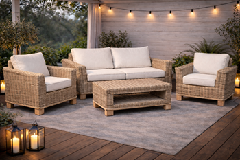 Zahradní ratanová sestava FERRARA je vyrobena z přírodního broušeného ratanu cubu, který se vyznačuje vysokou pevností, pružností a dlouhou životností. Tento typ ratanu patří mezi nejodolnější přírodní materiály používané pro výrobu venkovního nábytku. Díky broušenému povrchu je materiál příjemný na dotek, lépe odolává mechanickému opotřebení a zachovává si přirozený vzhled bez umělých povrchových úprav.