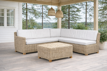 Nábytek z přírodního ratanu Zahradní ratanová sestava MIRABELLA 222 × 222 cm roh z přírodního broušeného ratanu CUBU
